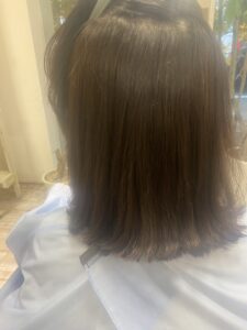 今回のお客様はロングからミディアムに切らせてもらったので、毛先の痛みがリセットされました。
